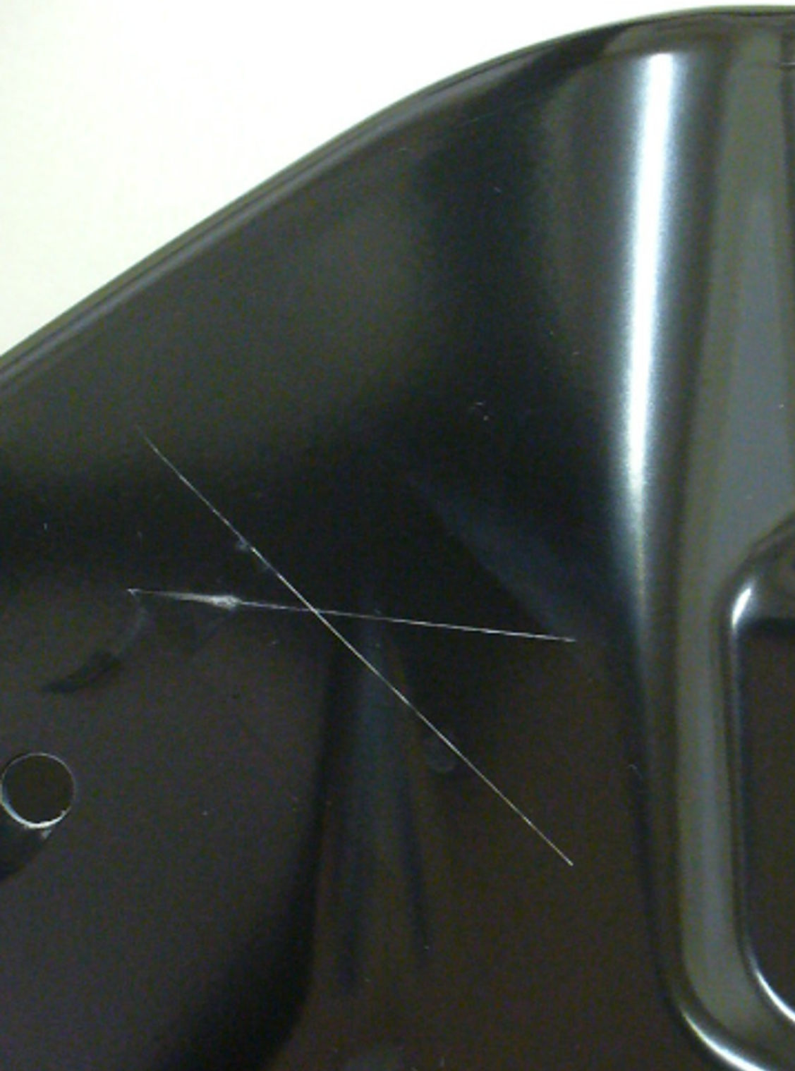 クロスカット部の二次密着性低下及び抜き穴端面からの糸錆発生