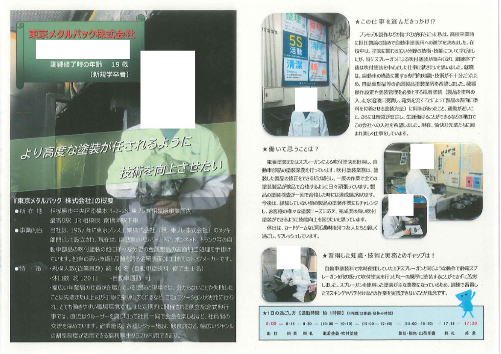 この冊子は多摩職業能力開発センターの他、東京都・神奈川県内の一部高校にも配布、展示されます。